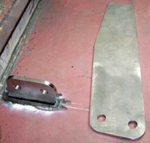 This picture shows the chainplate for the side stays (cap stay and intermediate stay). It shows the chainplate as it will look when fitted, with just the top above deck. To the right-side of the picture is the unfitted chainplate (lying on the deck), so you can see just how much of it is below deck. It needs to be this size to handle the load placed on it by the mast and sails.