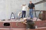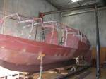 Well, we’re done with the steel work. The hull is as finished as it’s going to be, and tomorrow it leaves the factory for the blaster’s yard. Over the next week all the steel will be grit blasted and re-primed. Most of the steel has already been blasted and shop-primed, and it’s only just the welds that are dirty. However, for the sake of longevity of the steel in a marine environment we’ve decided to completely reblast and reprime.