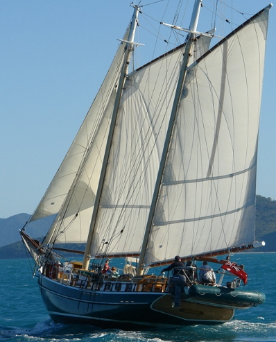 Leanne Marie was launched in 1993 and is considered to be one of the most beautiful yachts ever built in Australia. She has been the focus of many an article and the pallet of a lot of artists. She is a 72′ gaff rigged schooner; a replica of the famous 72′ schooner ‘Integrity”‘ designed and built by Pete Culler in 1960-62. Culler’s designs are considered so important that over a hundred of them are now archived in the Mystic Seaport Museum in America. Schooners like these worked the Grand Banks in the North Atlantic and plied the east coast of America for 200 years as trading packets.