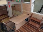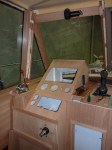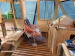 Here are some photos of Yamoya’s pilot house. Glenn’s Mum & Dad came to stay for a couple of weeks and Dad helped with the very laborious task of fitting the hull lining in this part of the boat. Since then I’ve started building the steering station and fitting the glass work which can be seen in the photos. I thought the steel had been welded reasonably straight, but when the perfectly flat glass is put against it I soon realised just how much variation there is. Still a fair bit of work to go here, but we think it’s starting to look good.