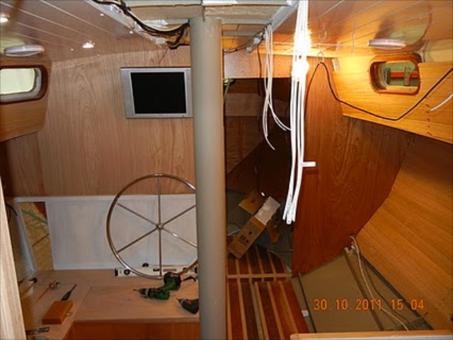Gojko and Boki were a great help. Just having a second and third pair of hands to help hold things can be invaluable. They helped with rechecking the level of the boat and adjusting it accordingly. This was a necessary step to get ready to mark the waterline, ready for painting. They also helped with removing the wooden rub rails so they could be varnished. Both of these jobs I just wouldn’t be able to easily do on my own – having three pairs of hand just made it so much easier. And when they had done that, they were plugging the screw holes in the interior fitout.