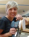 Tina gave up some off-time to come down from the Gold Coast for a few days.Sonja has been doing her best to persuade people to come and help. One that answered the call was Sonja’s niece, Tina, who gave up some off-time to come down from the Gold Coast for a few days. During this time she sanded and coated the wooden rub rails that fit along the side of the hull.