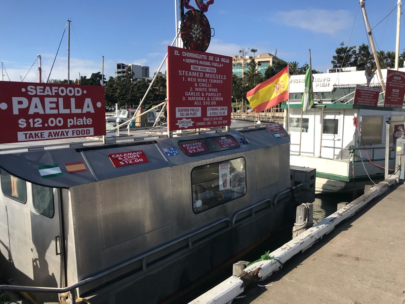 As you would expect, cafes and restaurants abound. One of our favourites was this floating seafood take away where we bought fried calamari and fresh mussels. The yacht club also had a nice cafe which was open to the public.