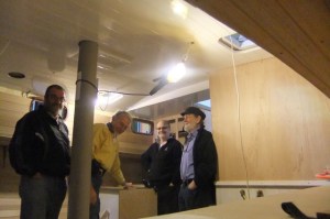 DSCF2506 Jim, Frank, “Yamoya” owner builder Glenn and “Salar Vee” owner skipper John Bish in the Galley/ Dinette.
