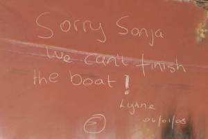 IMG_3777 Lyn’s graffiti was a response to her earlier question to Sonja, “Do you want me to help with anything?”.