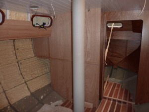 Looking forward from the galley (kitchen) into the dinette area, to the left. To the right is the door into the forward cabin.